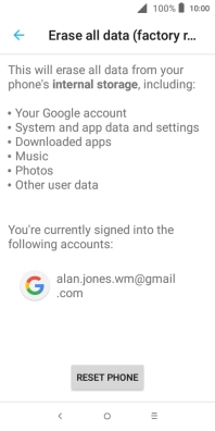 Press ERASE EVERYTHING. Wait a moment while the factory default settings are restored. Follow the instructions on the screen to set up your phone and prepare it for use.