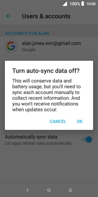 Press the indicator next to "Automatically sync data" to turn the function on or off.