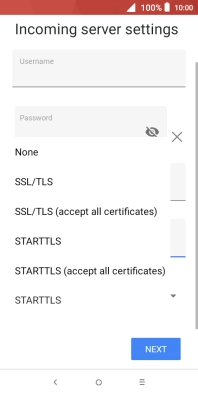 Press the field below "Server" and key in the name of your email provider's incoming server.