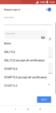 Press the indicator next to "Require sign-in" to turn the function on or off. Please note that if you're using Vodafone's outgoing server, turn off SMTP authentication and leave the username and password fields empty.