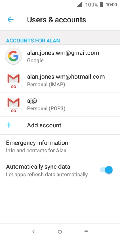 Press the indicator next to "Automatically sync data" to turn the function on or off.