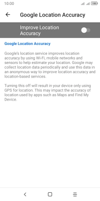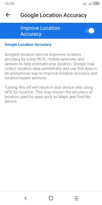 If you press the indicator next to "Improve Location Accuracy" to turn off the function, your phone can find your exact position using the GPS satellites but it may take longer as there is no access to supplementary information from the mobile network or nearby Wi-Fi networks.
