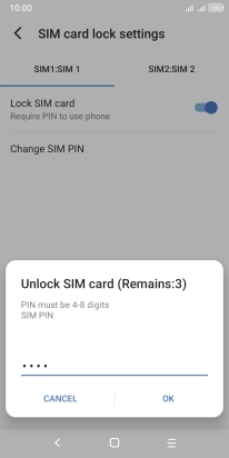 Press the indicator next to "Lock SIM card" to turn the function on or off.