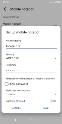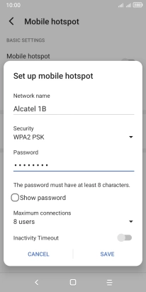 Press WPA2 PSK to password protect your Wi-Fi hotspot.