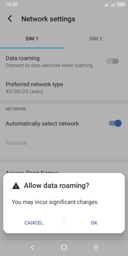 Press the indicator next to "Data roaming" to turn the function on or off.