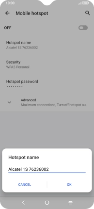 Press Hotspot name and key in the required name for the Wi-Fi hotspot.