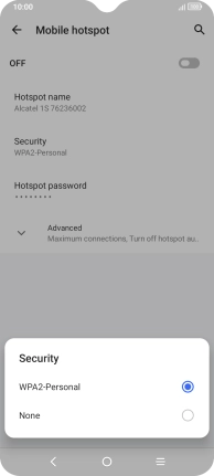 Press WPA-2 Personal to password protect your Wi-Fi hotspot.