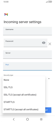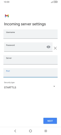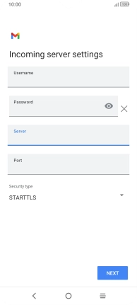 Press the field below "Server" and key in the name of your email provider's incoming server.