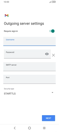 Press the indicator next to "Require sign-in" to turn the function on or off. Please note that if you're using Vodafone's outgoing server, turn off SMTP authentication and leave the username and password fields empty.