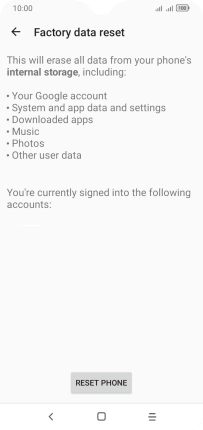 Press ERASE EVERYTHING. Wait a moment while the factory default settings are restored. Follow the instructions on the screen to set up your phone and prepare it for use.