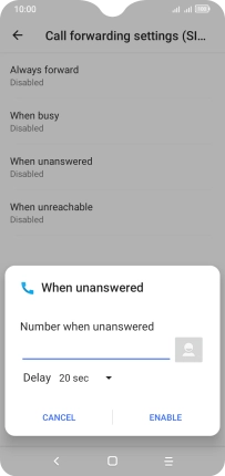 If you divert missed calls, you need to select a delay for the divert. Press the drop down list next to "Delay" to select a delay for the divert.