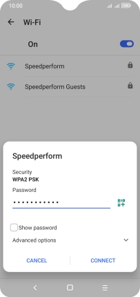 Key in the password for the Wi-Fi network and press CONNECT.