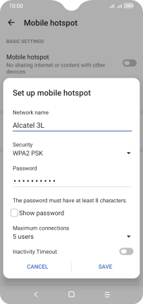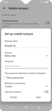 Press WPA2 PSK to password protect your Wi-Fi hotspot.