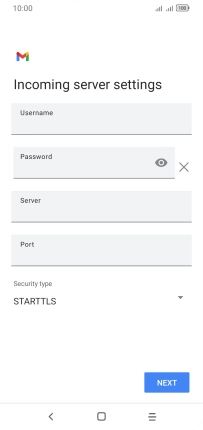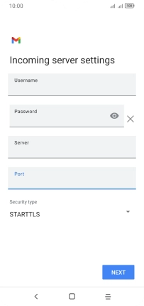 Press the field below "Server" and key in the name of your email provider's incoming server.