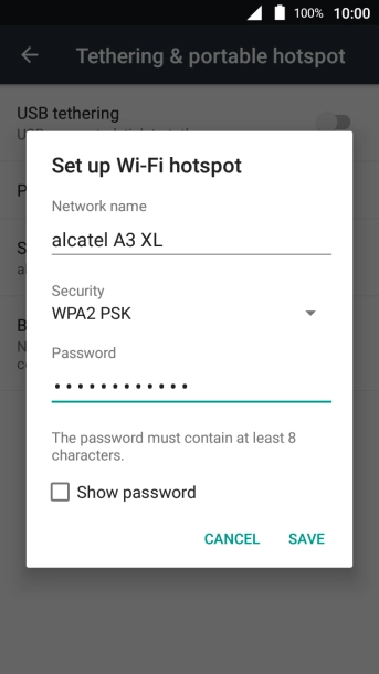 Press WPA2 PSK to password protect your Wi-Fi hotspot.