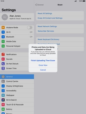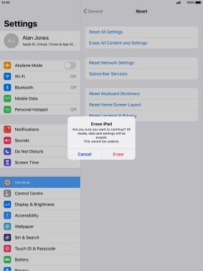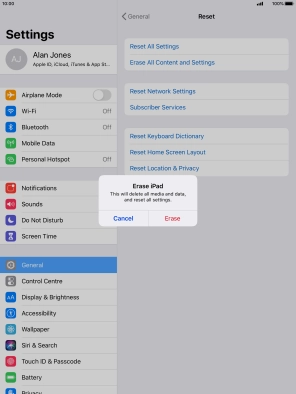 Key in the password for your Apple ID and press Erase. Wait a moment while the factory default settings are restored. Follow the instructions on the screen to set up your tablet and prepare it for use.