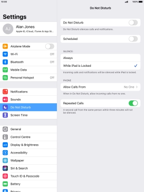 Use Do Not Disturb on your Apple iPad 10.2 (7th gen.) iPadOS 13.1