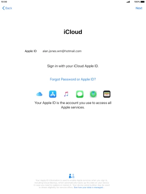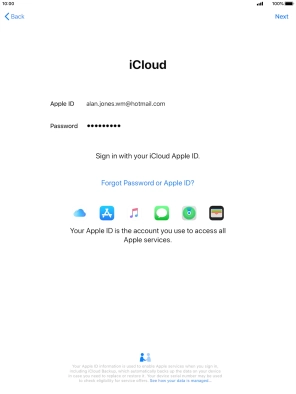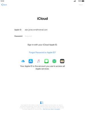 Press the field next to "Apple ID" and key in the username for your Apple ID.