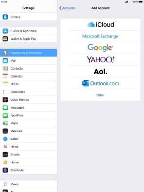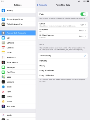 Press the required email account and follow the instructions on the screen to select settings for the specific account.