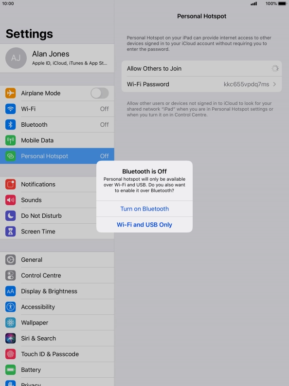 Press Personal Hotspot.