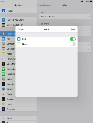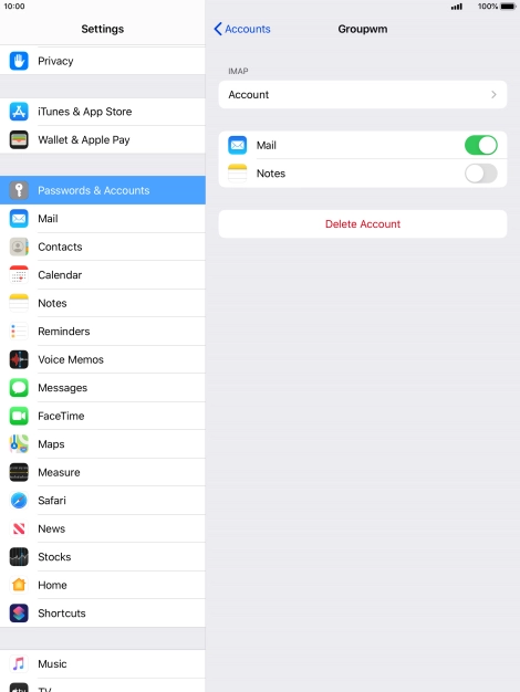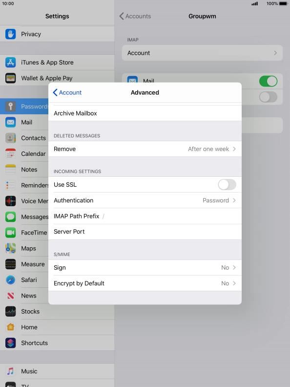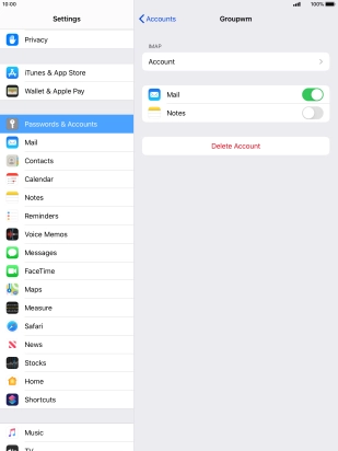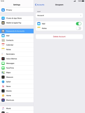 Press the required email account and follow the instructions on the screen to select settings for the specific account.