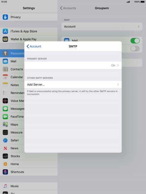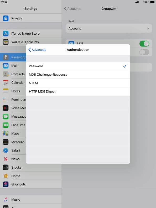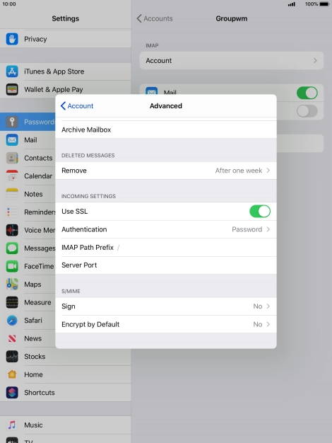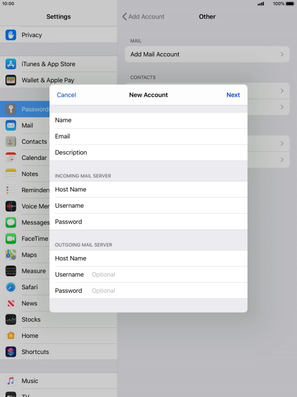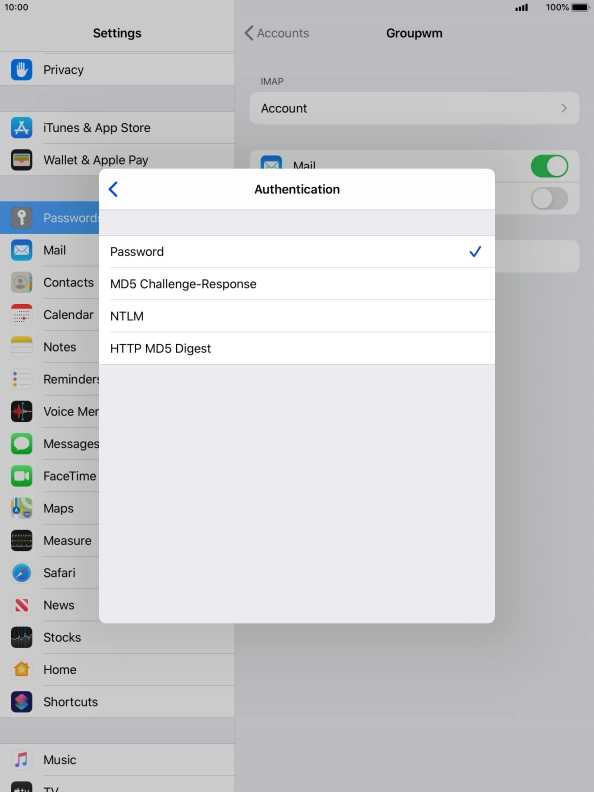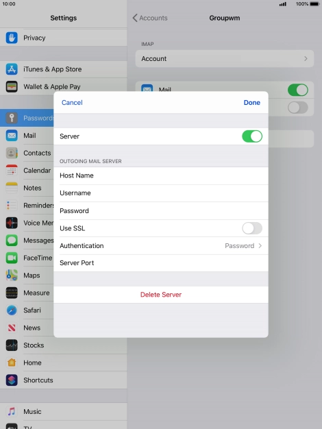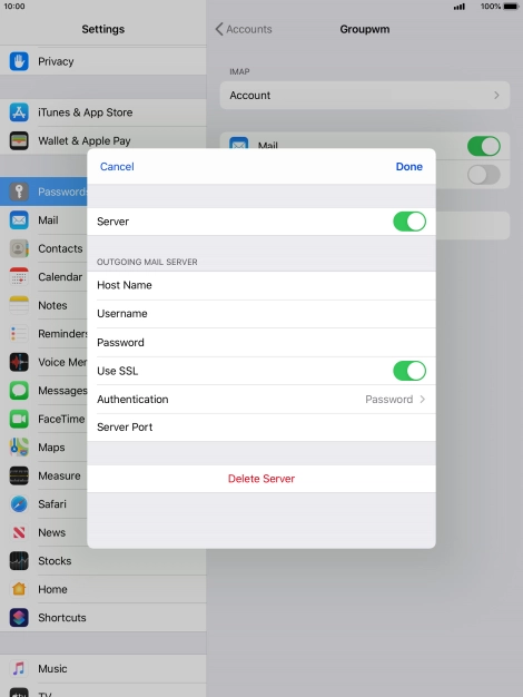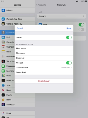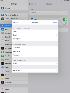 Press Password and key in the password for your email account. Please note that if you're using Vodafone's outgoing server, leave the password field empty.