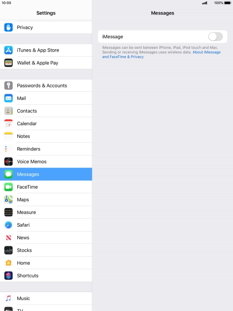 Press the indicator next to "iMessage" to turn on the function.