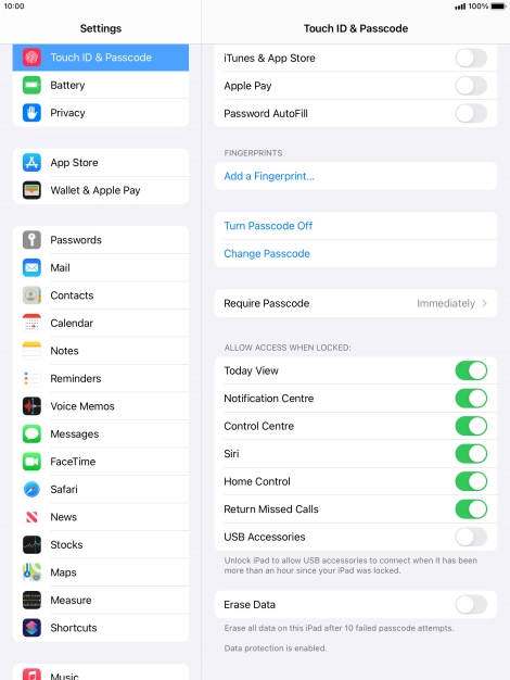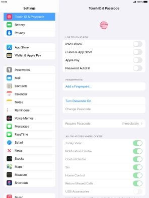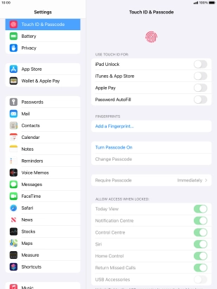 Press Turn Passcode On and key in a lock code of your own choice twice.