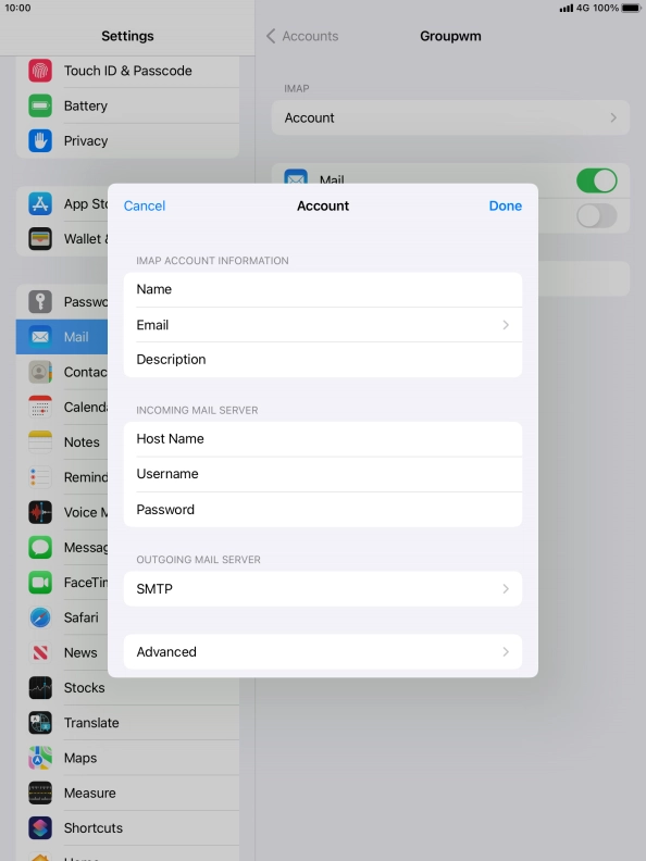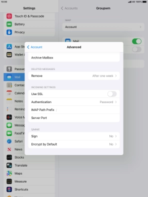 I can't send and receive email messages on my Apple iPad 10.2 (7th gen.) iPadOS 15.2