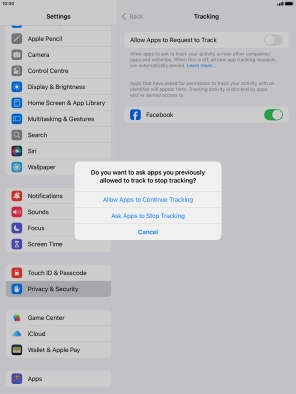 Turn tracking request for downloaded apps on your Apple iPad 10.2 (7th gen.) iPadOS 18 on or off