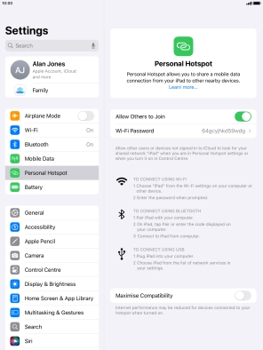 Use your Apple iPad 10.2 (7th gen.) iPadOS 18 as a personal hotspot
