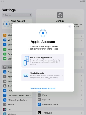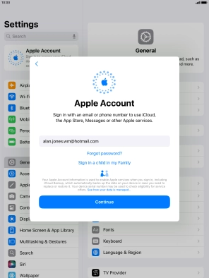 Activate Apple ID on your Apple iPad 10.2 (7th gen.) iPadOS 18