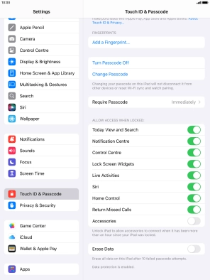 Press Turn Passcode On and key in a lock code of your own choice twice.