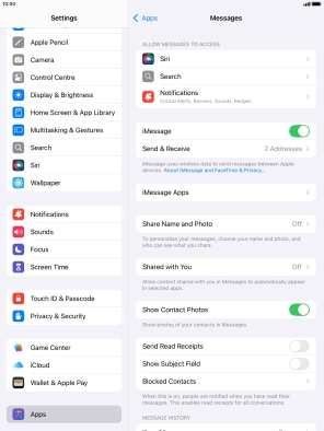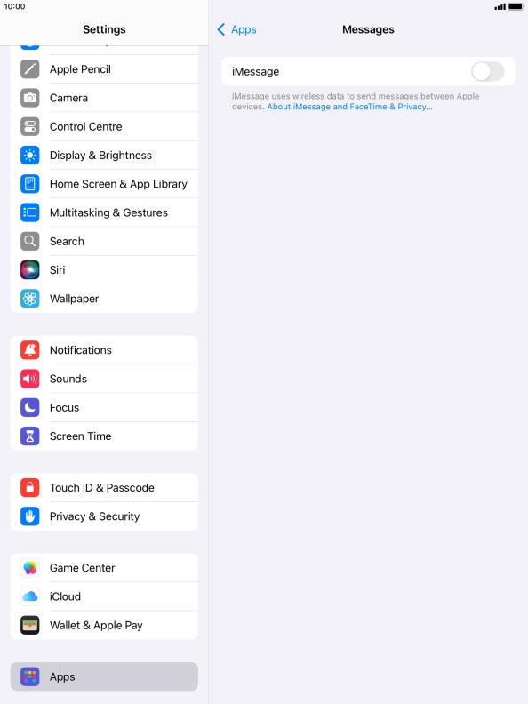 Press the indicator next to "iMessage" to turn on the function.