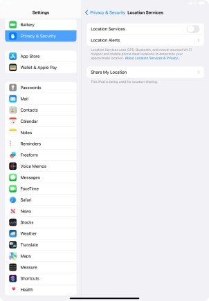 Turn GPS on your Apple iPad (10th Generation) iPadOS 17 on or off