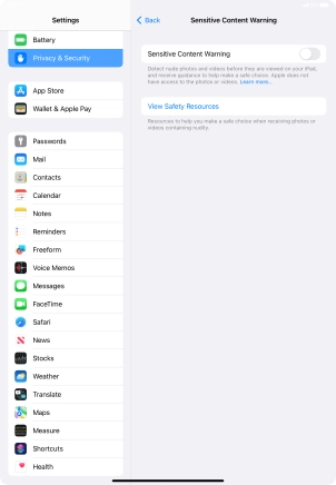 Turn Sensitive Content Warning on your Apple iPad (10th Generation) iPadOS 17 on or off