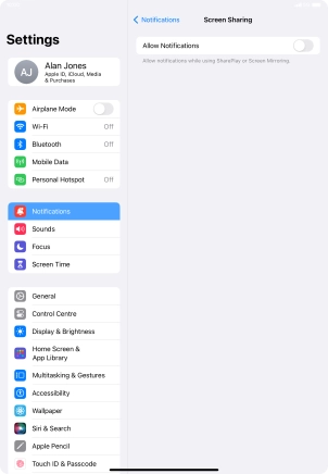 You can turn display of notifications when using SharePlay or Screen Mirroring on or off.