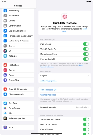 You can use your fingerprint to turn off the lock code, allow access to apps and authorise payments.