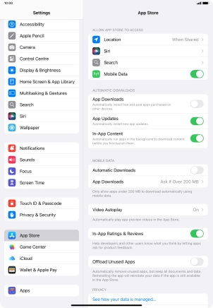Press the indicator next to "App Downloads" to turn the function on or off.