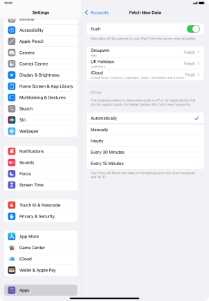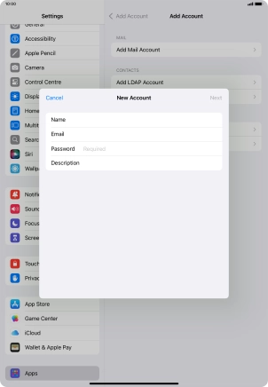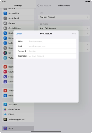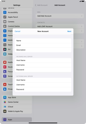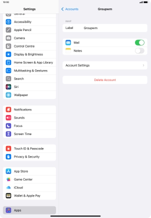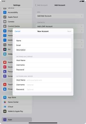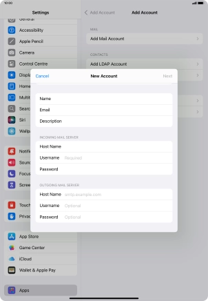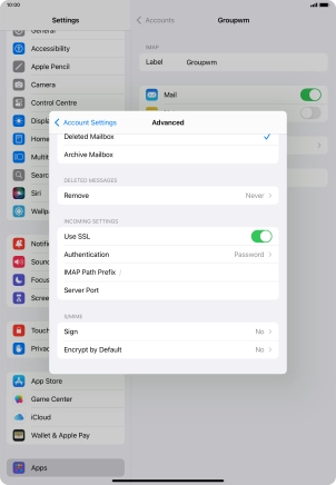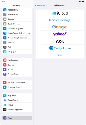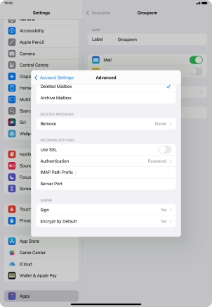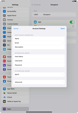 Press the required email account and follow the instructions on the screen to select settings for the specific account.