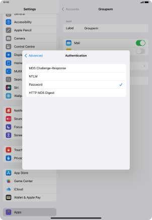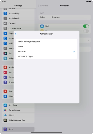 Press Password and key in the password for your email account.