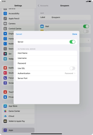 Press Username and key in the username for your email account. Please note that if you're using Vodafone's outgoing server, leave the username field empty.