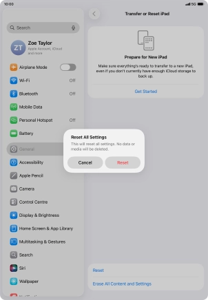 Key in the password for your Apple Account and press Turn Off. Wait a moment while the factory default settings are restored. Follow the instructions on the screen to set up your tablet and prepare it for use.
