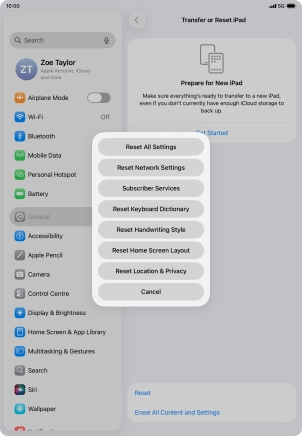 If you choose to restore settings and data, settings, contacts, audio files, videos and appointments are deleted. When you've restored settings and data, you need to activate your tablet.