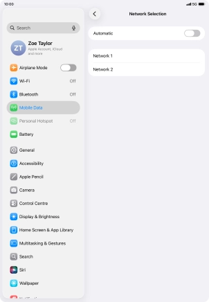Press the indicator next to "Automatic" to turn automatic network selection on or off.