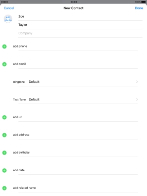 Follow the instructions on the screen to add more information such as an email address and a personal ring tone.