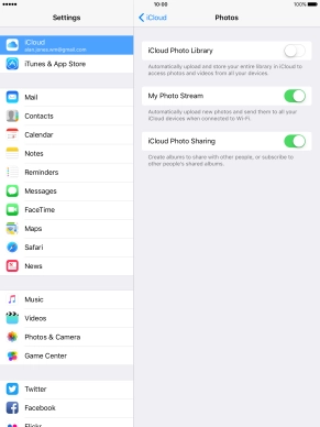 Press the indicator next to "My Photo Stream" to turn the function on or off.