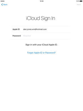 Press the field next to "Apple ID" and key in the username for your Apple ID.