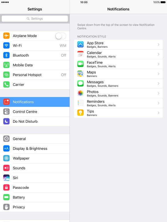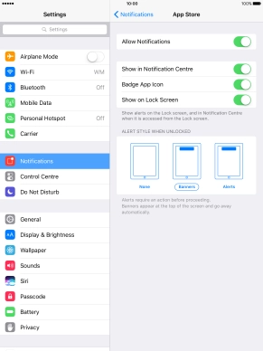 Press the indicator next to "Allow Notifications" to turn notifications for the selected application on or off.