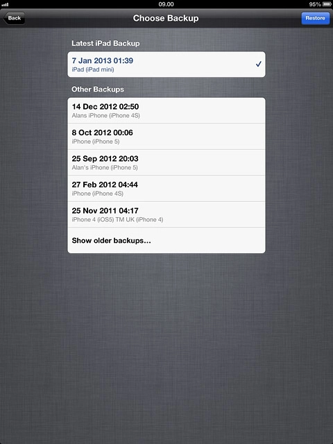 Click the drop down list next to Restore from this backup.